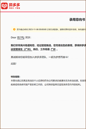 实训项目提升了我的能力,企业实地参观体验让我有了不一样的眼界,老师们的培养让我更加明确了自己的就业方向,我在大三下学期拿到了3份offer,最终选择的作业帮的产品经理,感谢经历!